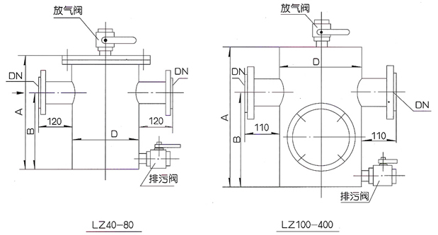 排污時打開下部的牌無法將積存的污垢雜質排出。粘附在濾網上的污垢可打開觀察孔蓋濾除。
