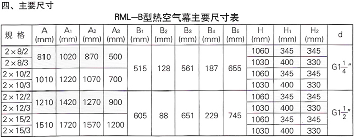 RML(W)-B hot air curtain is mainly composed of fan, air heater, upper and lower air guide covers, air outlet cover and other parts. It is a device that heats indoor air through an air heater, and the heated air is blown out by a fan to form an air curtain, which is used to isolate indoor and outdoor cold and hot air. This equipment has many characteristics, such as low noise, power saving, easy installation, convenient use and maintenance, etc. The heat medium of this hot air curtain is mainly 0.1~0.6Mpa steam, and its installation forms are divided into vertical and horizontal. It is widely used in ventilation, heating, air conditioning and other projects in various industries, especially in places where people frequently come in and out and doors are often opened, such as shopping malls, theaters, hotels and so on.